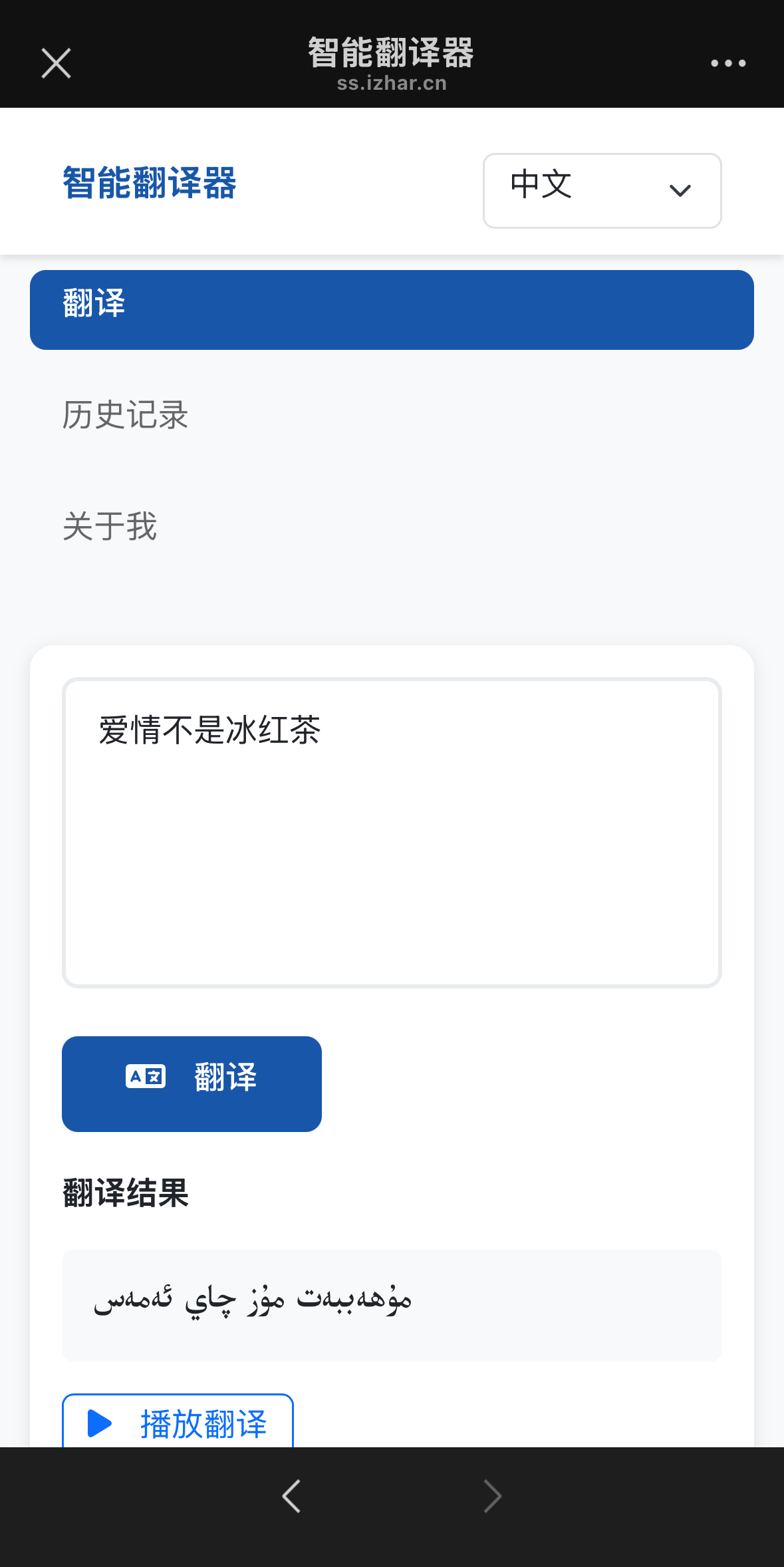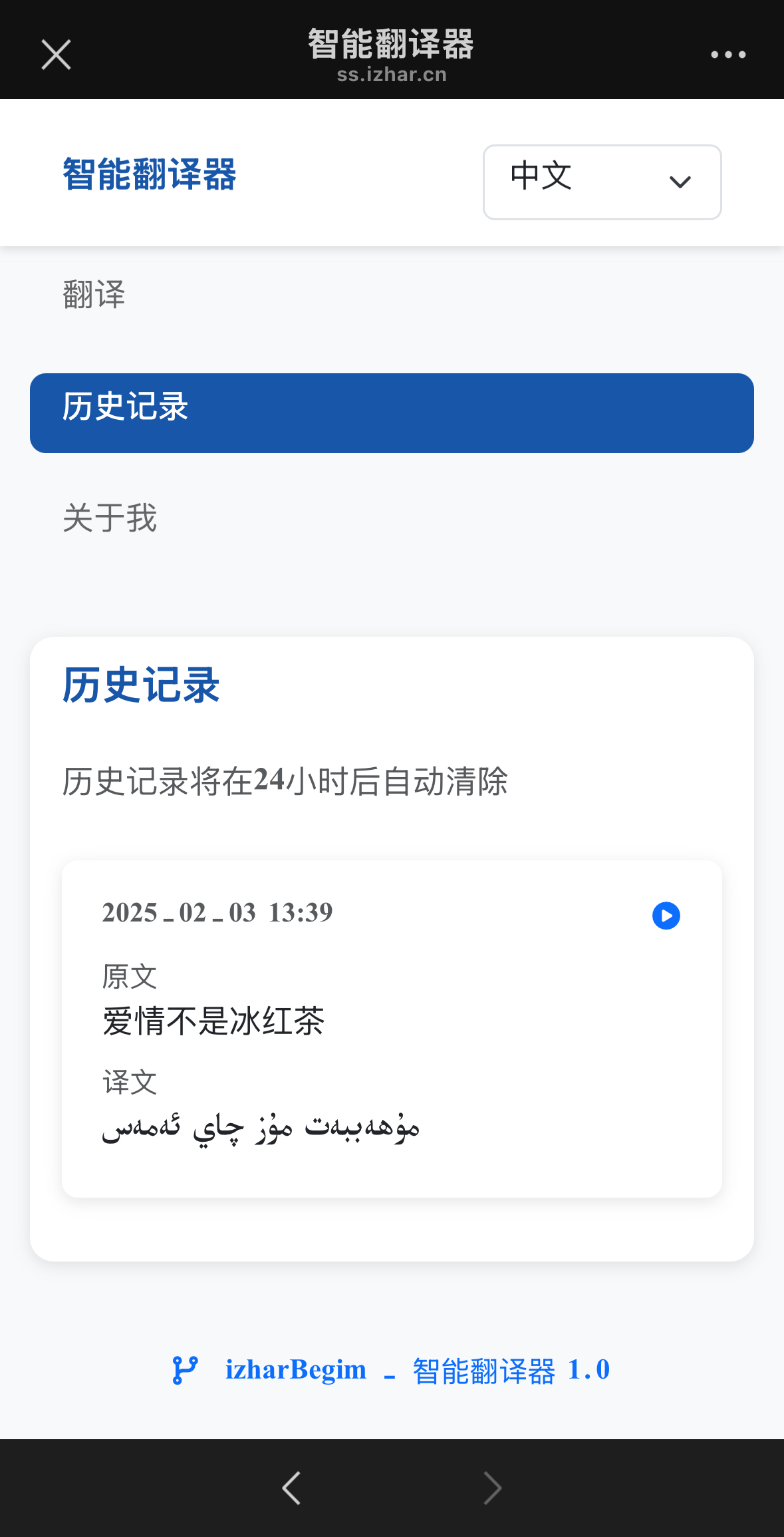بۇ تەرجىمان بەت يۈزى كۆركەم ، ئۇيغۇرچە ۋە خەنزۇچە بەت يۈزىنى ئالماشتۇرۇپ كۆرسىتىشنى قوللايدۇ؛ تەرجىمە قىلماقچى مەزمۇننى كىرگۈزۈپلا تەرجىم قىلىشنى باسسىڭىز بولىدۇ،ئايرىم نىشان تىل بىكىتىش ھاجەتسىز،سىزنىڭ كىرگۈزگەن مەزمۇن ئۇيغۇرچىمۇ يا خەبزۇچىمۇ ئاپتۇماتىك تونۇپ ئۆز ئارا تەرجىمە قىلىدۇ؛ تەرجىمە خاتىرىسنى يەرلىكتە سىز ئۈچۈن 24 سا ئەت ساقلاپ بىرىدۇ،بۇلۇت سۇپىسىغا يۈكلەنمەيدۇ،مۇشۇ ۋاقىت ئىچىدە تەرجىمە خاتىرىسىدىن ئۆزىڭىز تەرجىمە قىلغان مەزمۇنلارنى كۆرەلەيسىز!